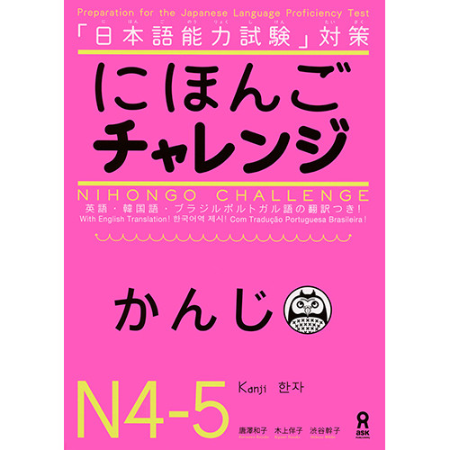 O Nihongo Challenge Kanji é um dos mais populares livros de kanji atualmente, não só por ter muitos exercícios bons, mas também por ter tradução para o português brasileiro! O complicado é que ele mistura os kanjis de N5 e de N4 em um livro só e acaba excluindo alguns kanjis.